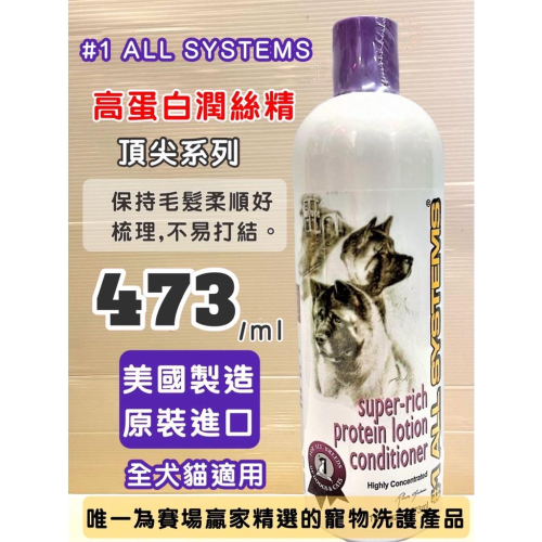 ⚜️妤珈寵物店⚜️美國 頂尖 # 1ALL SYSTEMS【高蛋白質潤絲謢毛精 16oz/瓶】柔順 蓬鬆 狗 犬 貓