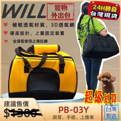 ✪妤珈寵物店✪WILL【PB 03 硬底 極透氣款 外出包 經典黃色】犬 狗 貓 兔子 可放will推車使用 寵物包