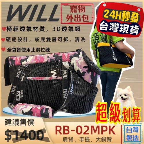 全新 現貨✪妤珈寵物店✪RB-02H 迷彩➤黑網➤粉色 WILL 手提包 極輕超透氣外出包可肩揹/大斜揹 犬 狗 貓