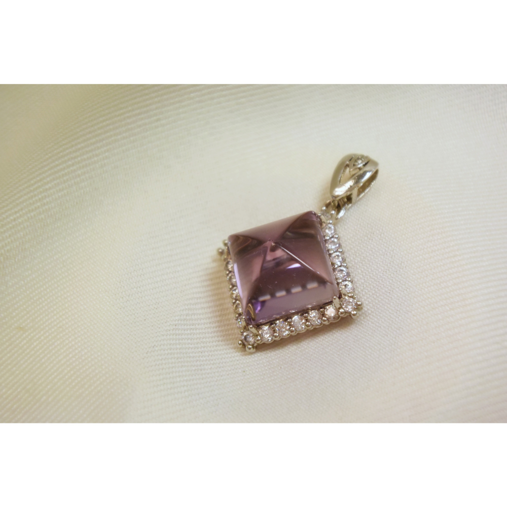 在方寸之間,一顆顆切割精緻的紫水晶閃耀著柔和的光芒,如同沈靜而堅定的靈魂。周圍群圍繞著鑽石,如星星簇擁,守護著那獨特的靈性寶石。
