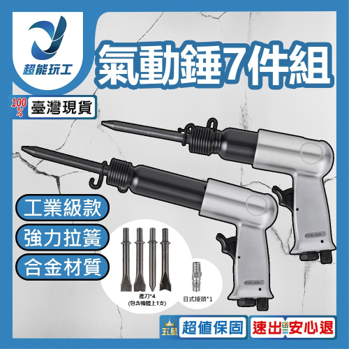 ●內容物配件:氣動鎚*1+固定彈簧*1+氣動鑿刀*4+快速接頭*1