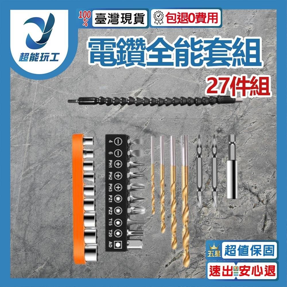 #電鑽全能套裝27件組 #六角柄 #麻花鑽頭 #十字鑽頭 #鑽孔加長桿