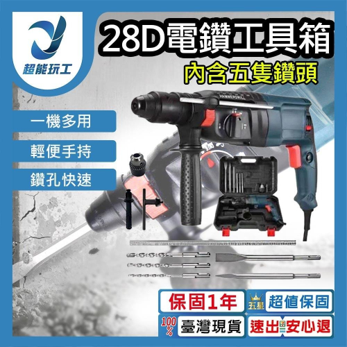 。品名:28D電鑽工具箱+五隻鑽頭+電錘轉電鑽夾頭