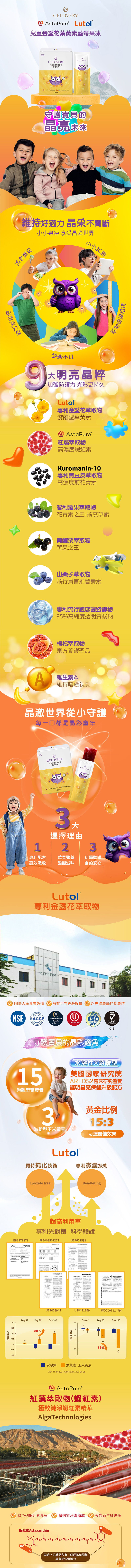 葉黃素與玉米黃素5:1黃金比例 (含葉黃素15mg+玉米黃素3mg) 專利游離型黃素液態好吸收,晶亮水潤好健康 QQ果凍感,味道超好吃。 【產品規格】 單盒15包,共15份。 【關鍵成份(每份)】 金盞花萃取物 100 mg 葉黃素 15 mg 玉米黃素 3 mg 玻尿酸 40 mg 【使用方式】 1. 於飯後每日1-2包,撕開包裝即可食用。 2. 兒童食用時,請大人陪伴並分段進食。 【警語】 本產品含有大豆及其製品,不適合對其過敏體質者使用。