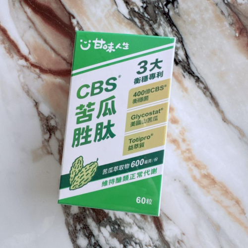 品名:甘味人生CBS®苦瓜胜肽 成分:Glycostat®美國專利山苦瓜萃取物、玉米澱粉(非基因改造)、CBS®專利衡穩菌(植物乳桿菌LPL28、羅伊氏乳桿菌GL-104、唾液乳桿菌AP-32、動物雙歧桿菌乳亞種CP-9)、菊糖、Totipro®專利益萃質益生菌發酵粉、鉻酵母、難消化性麥芽糊精、硬脂酸鎂、杜仲葉萃取粉(杜仲葉萃取物、麥芽糊精)、二氧化矽。 膠囊成分:羥丙基甲基纖維素、純水、鹿角菜膠、二氧化鈦、氯化鉀、食用黃色四號、食用黃色五號。 食用方法:每天2-4粒,每次1粒 餐飯前1小時搭配冷溫開水食用 ⚠️注意事項 1.本產品含有牛奶,大豆及其製品。 2.孕婦、哺乳、特殊疾病者,食用前請先諮詢醫生。 3.鉻之每日最高攝食量不得超過200ug。