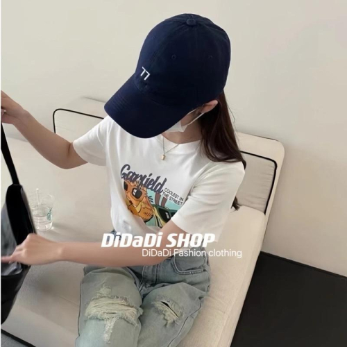 N-1109 𝓢𝓱𝓸𝓹 🏷萌妹加菲貓插畫奧黛爾棉上衣
