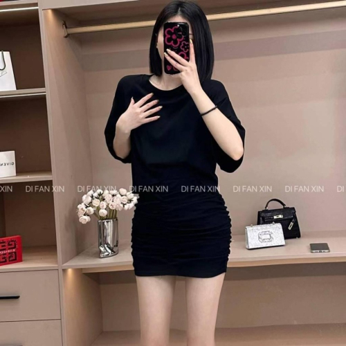 N-1109 𝓢𝓱𝓸𝓹 現貨🏷韓版🛒休閒簡約圓領上衣+褶皺包裙套裝
