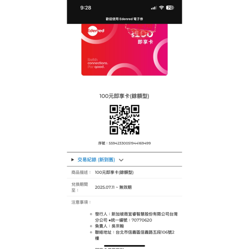 全家/屈臣氏 100面額 虛擬電子卡 無期限 餘額型 可分次抵用 95折優惠價😍