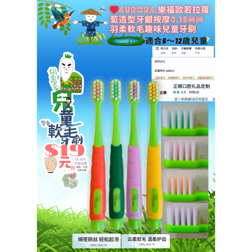 ❤Aurora.樂福歐若拉胡蘿蔔造型牙齦按摩0.15mm羽柔軟毛趣味兒童牙刷