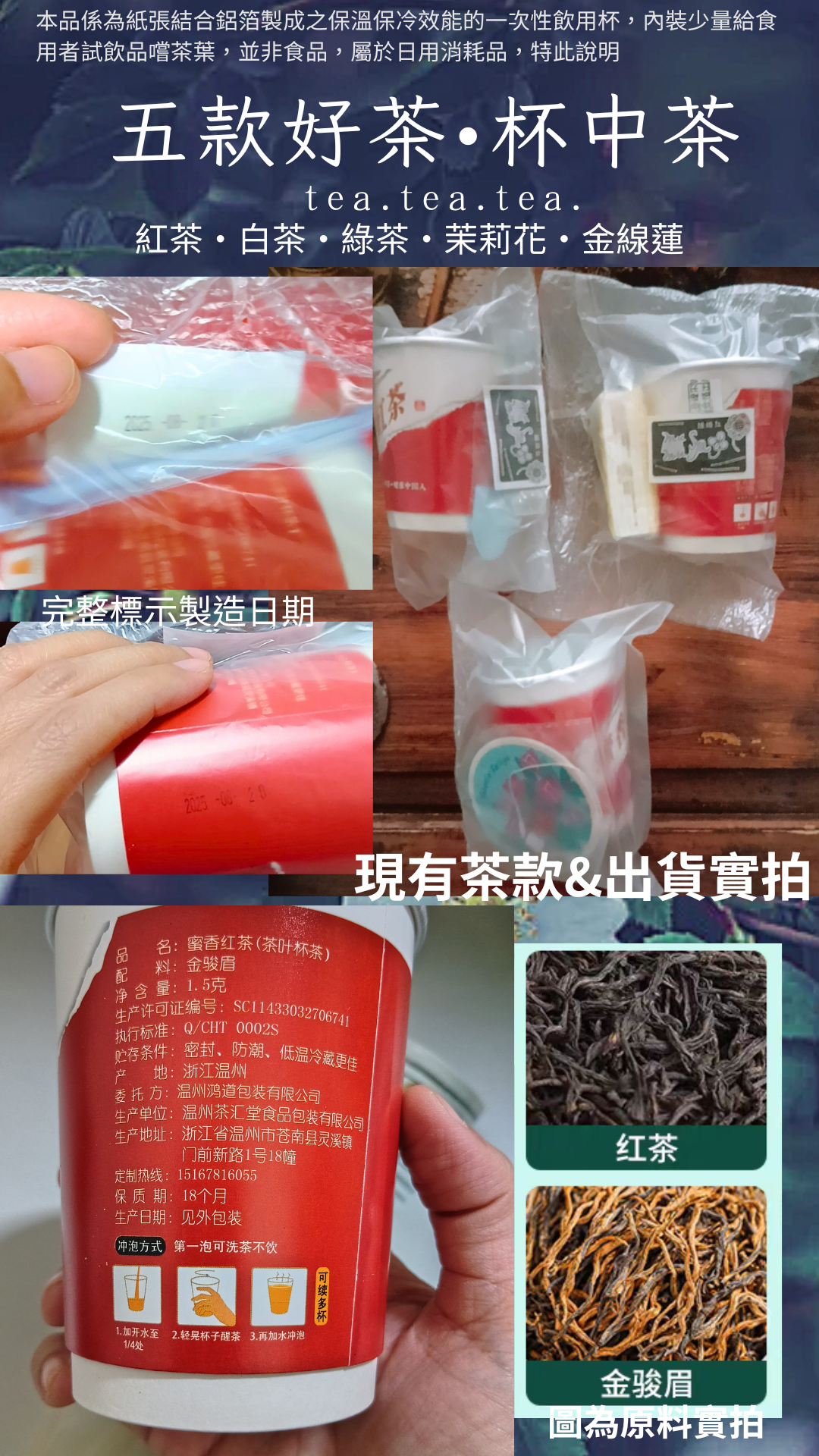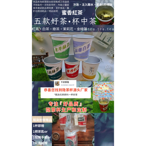 台灣現貨出貨蜜香紅茶龍井綠茶白茶茉莉花茶金線蓮茶五款口味杯中茶隱茶杯中茶帶茶葉的一次性紙杯隨手杯茶葉水杯加厚雙層鋁箔茶杯,一杯可回沖三次,買一杯贈擦手紙or茶匙