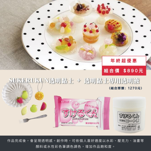 - 可搭配使用SUKERUKUN透明黏土專用塗液,增加作品的透明度。