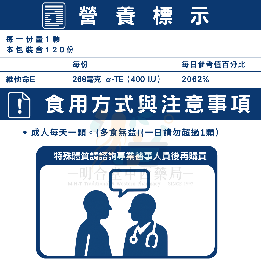 🌟【優質生活-維生素E 膠囊】藥師精選|120顆|美國製|GMP製造|健康維持·營養補給