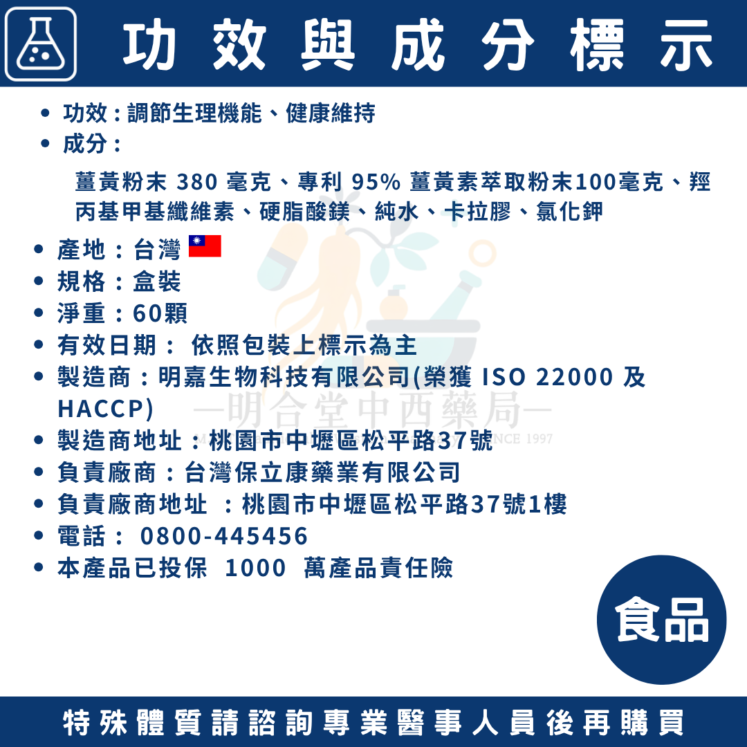 🌟【優質生活-薑黃素 膠囊】藥師精選|台灣製|60粒|調節生理機能·健康維持·專利95%薑黃萃取物