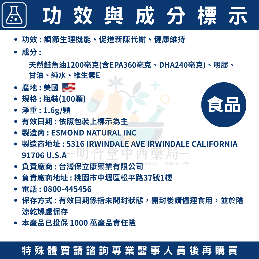 🌟【利舒淨-高單位魚油 膠囊】藥師精選|100顆|美國製|GMP製造|TG型|取自新鮮鮭魚·調節生理機能·促進代謝