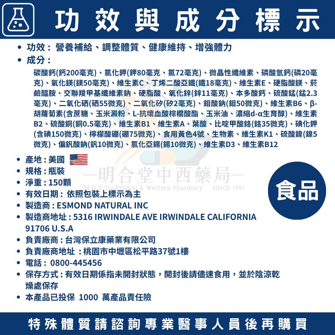 🌟【得利旺-綜合維他命錠】藥師精選|150錠|美國製|GMP製造|調整體質·健康維持·營養補給