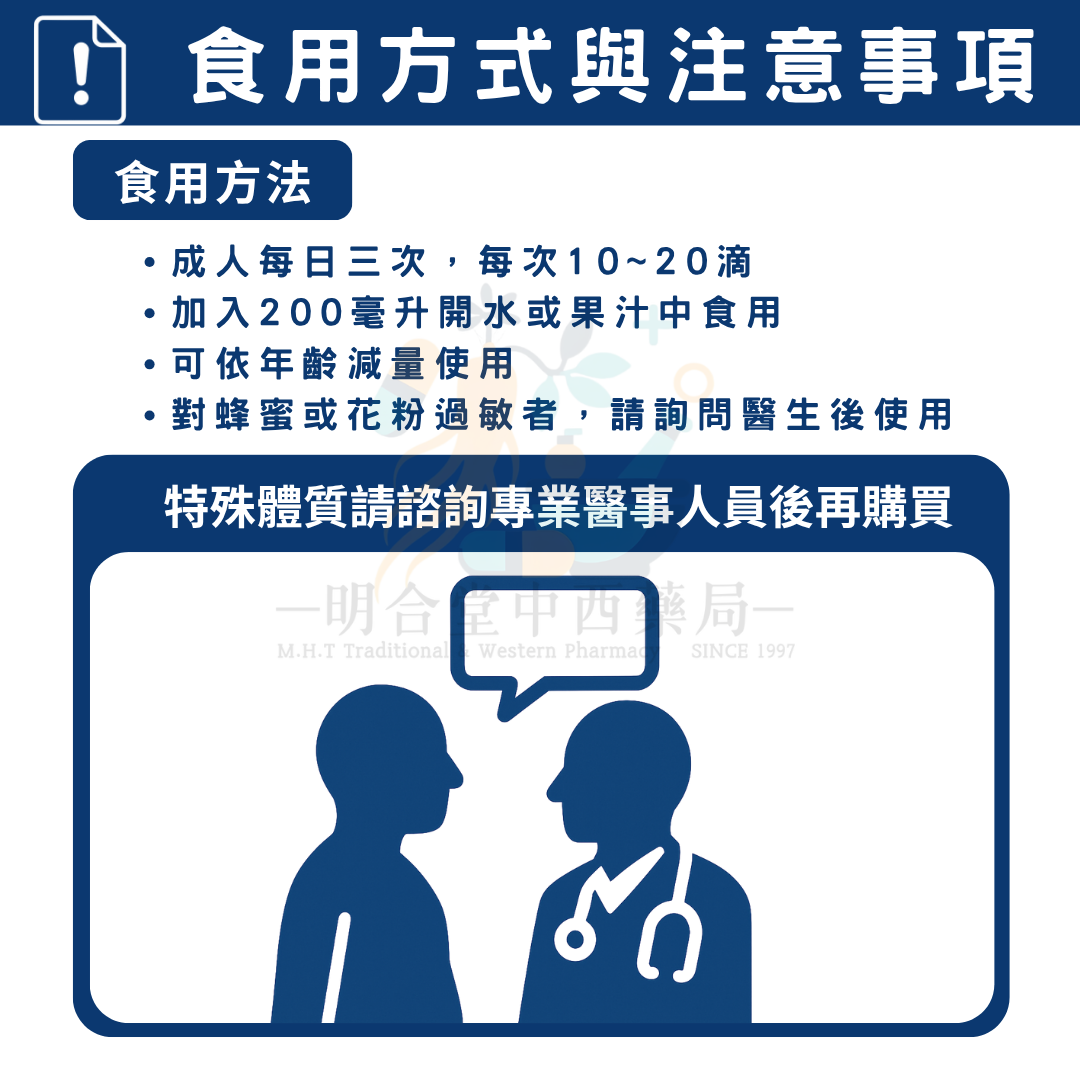 🔸 成人每日三次,每次10~20滴