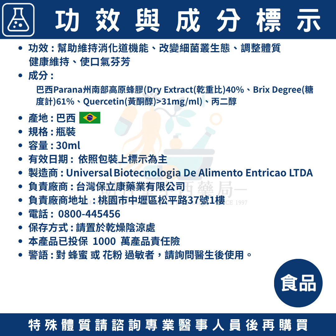 🌟【精品巴西高原 蜂膠液】藥師精選|30ml|巴西進口|幫助維持消化道機能·改變細菌叢生態·使口氣芬芳
