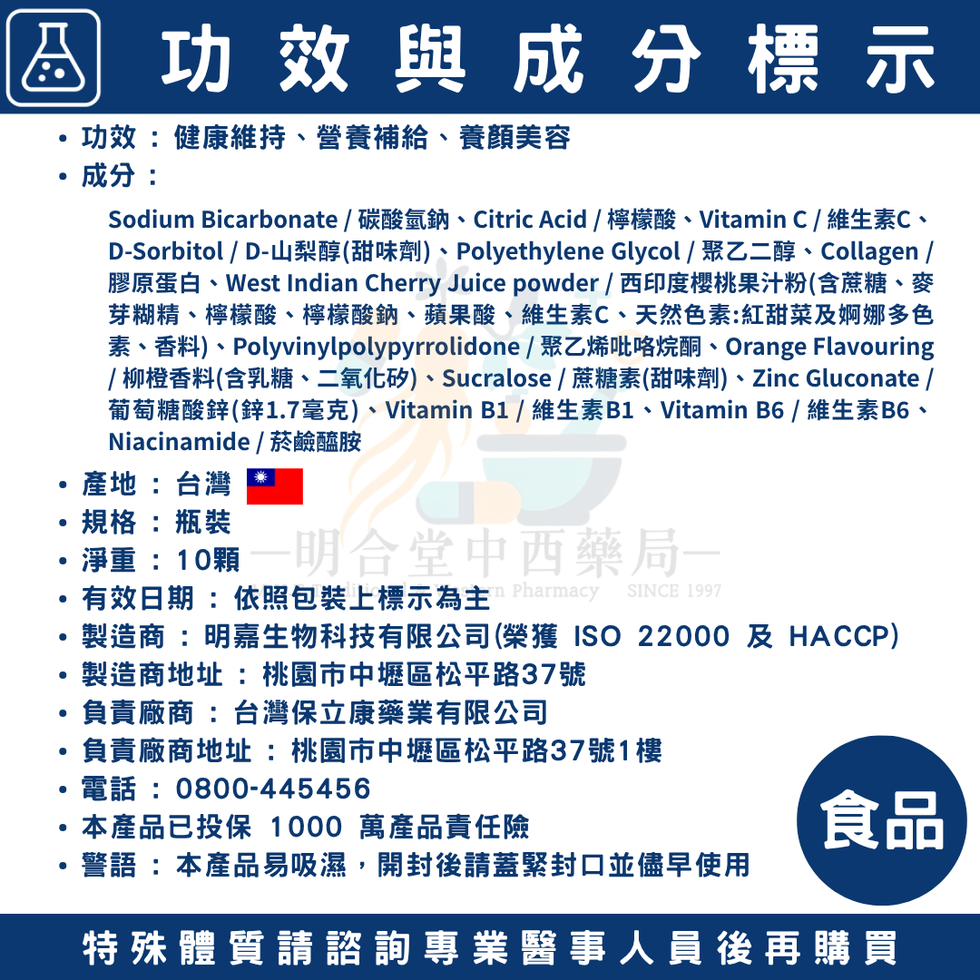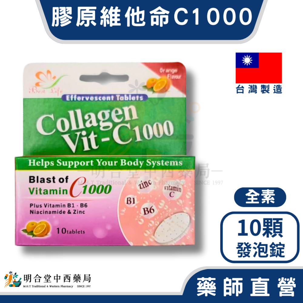 🌟【優質生活-膠原維他命C1000 發泡錠】藥師精選|10顆|台灣製|養顏美容·營養補給·健康維持