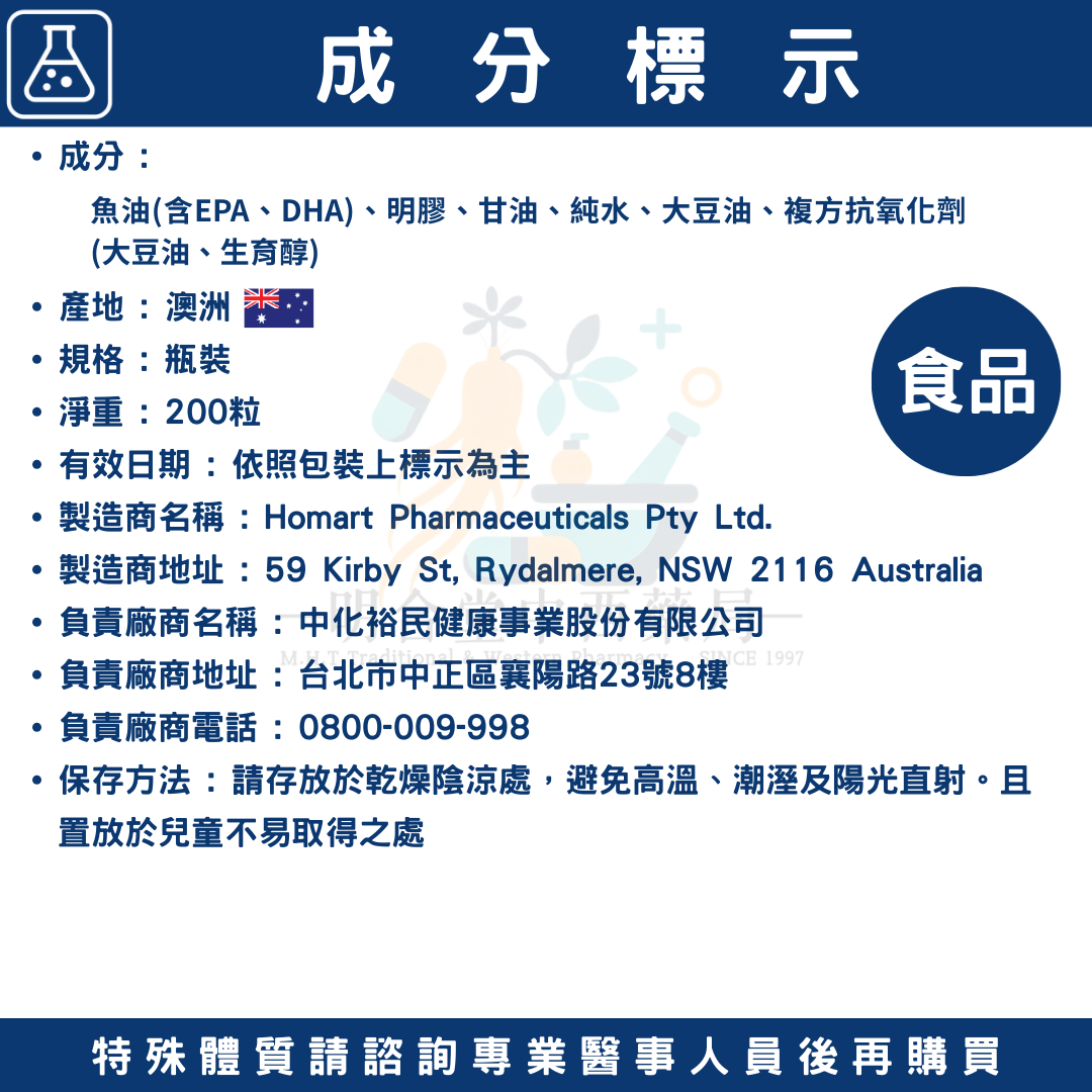 🌟【中化-綠芙特級-純淨深海魚油 膠囊】藥師精選|200顆|澳洲製|GMP藥廠製造|調節生理機能·促進代謝·營養補給