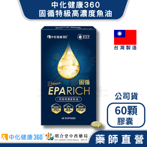 🌟【中化健康360-固循特級高濃度魚油 膠囊】藥師精選|60顆|台灣製|GMP製造|rTG魚油|調節生理機能·代謝