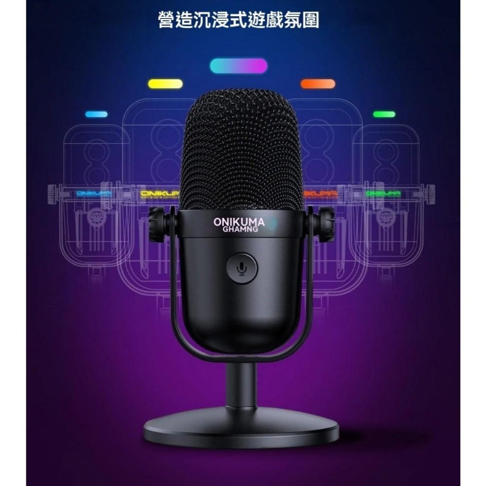 【ONIKUMA M830 台灣總代理】專業電競直播/遊戲語音/錄音麥克風 | RGB炫彩 | 96KHz高音質 | USB隨插即用