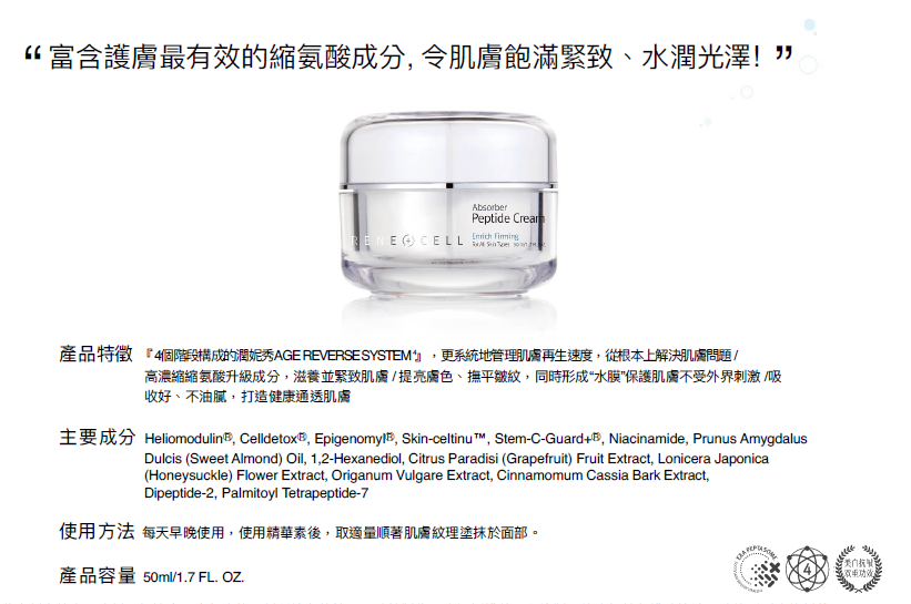 【韓國塗抹式微整型保養品】【Renecell卡麗斯】多肽緊緻霜