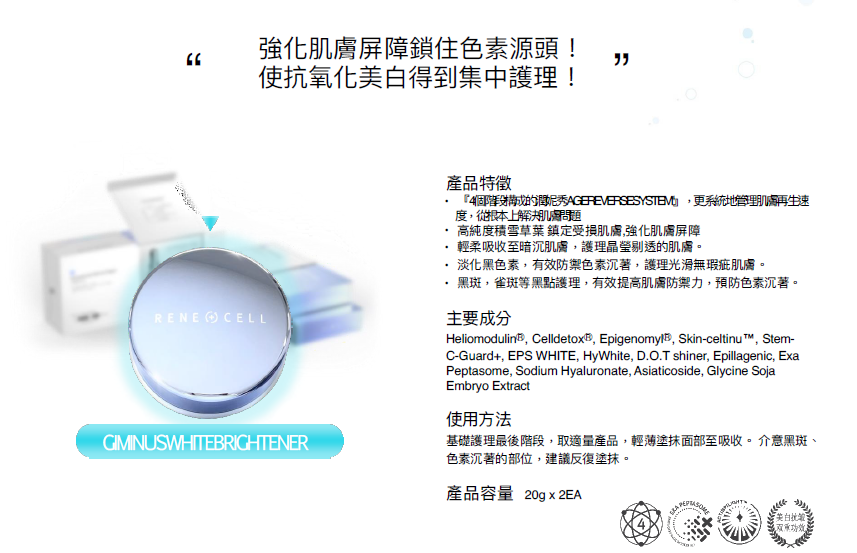 【韓國塗抹式微整型保養品】【Renecell卡麗斯】美白去斑霜