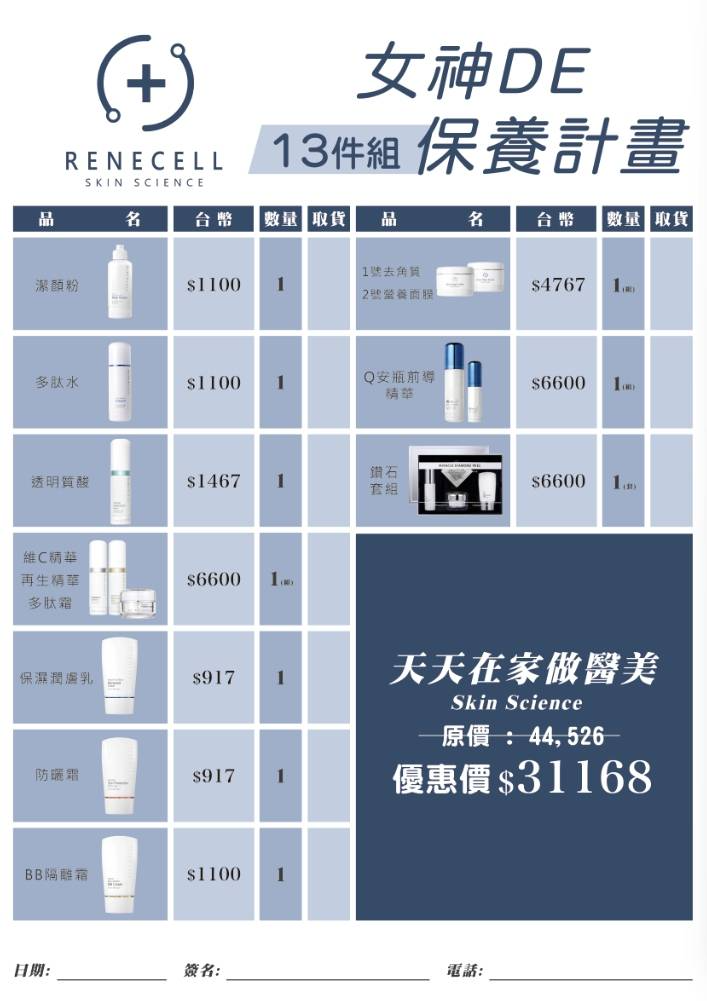 韓國原裝進口 RENECELL 精選13件專業級保養組,涵蓋清潔、角質代謝、前導修護、亮白安瓶、保濕滋潤與日間防護,打造全方位居家醫美保養流程。從酵素潔顏粉、多肽水、玻尿酸安瓶,到鑽石煥膚組與BB隔離霜,層層養膚無死角,讓肌膚恢復細緻彈潤、透亮無瑕。