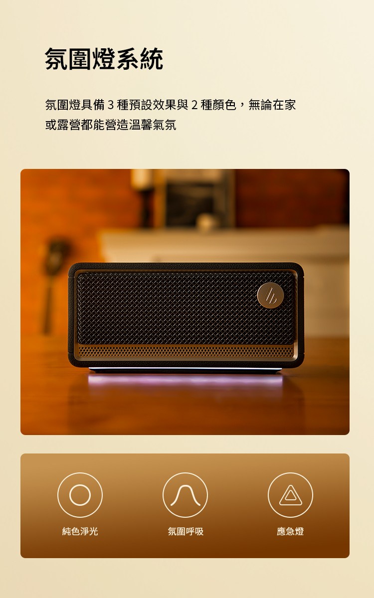 🔅 燈光模式:氛圍呼吸、純色淨光、應急燈