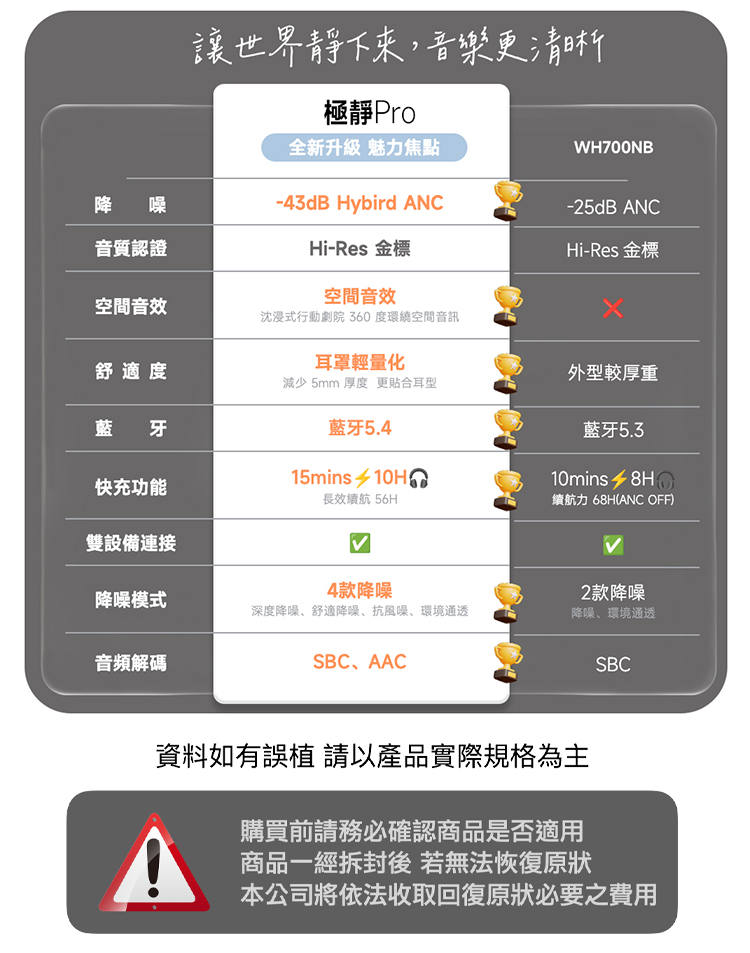 .主動式 ANC -43dB 深度降噪|舒適降噪|環境聲通透|防風噪