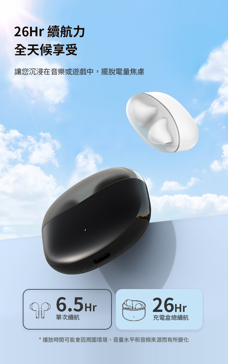 .超長續航力 26hr 全天候享受音樂 支援快充