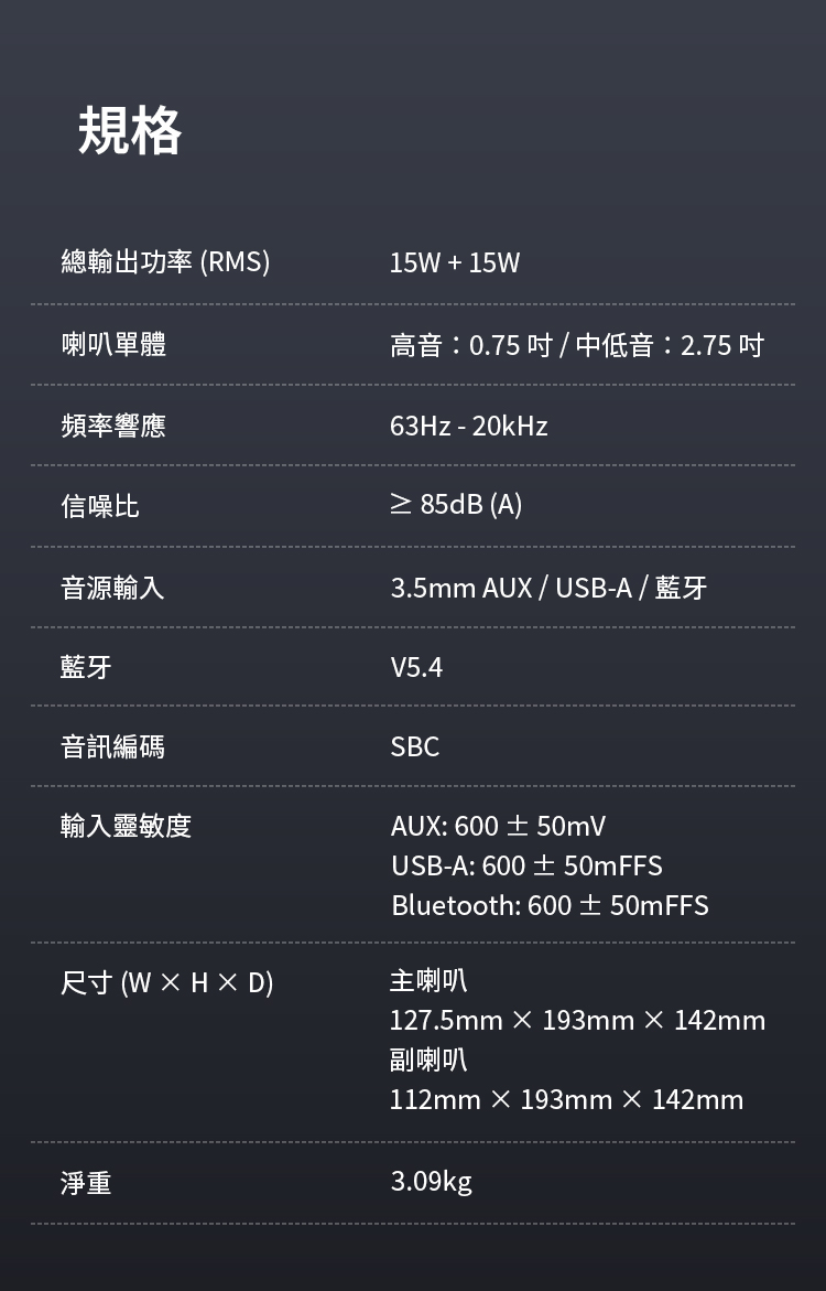 .支援多元輸入:AUX/藍牙5.4/USB-A