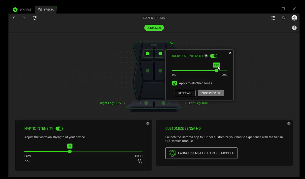 Razer Sensa 搭配由 Interhaptics 驅動的複雜軟體,讓遊戲開發者透過 Interhaptics SDK 擁有更高的自訂空間,打造內容豐富的遊戲體驗。