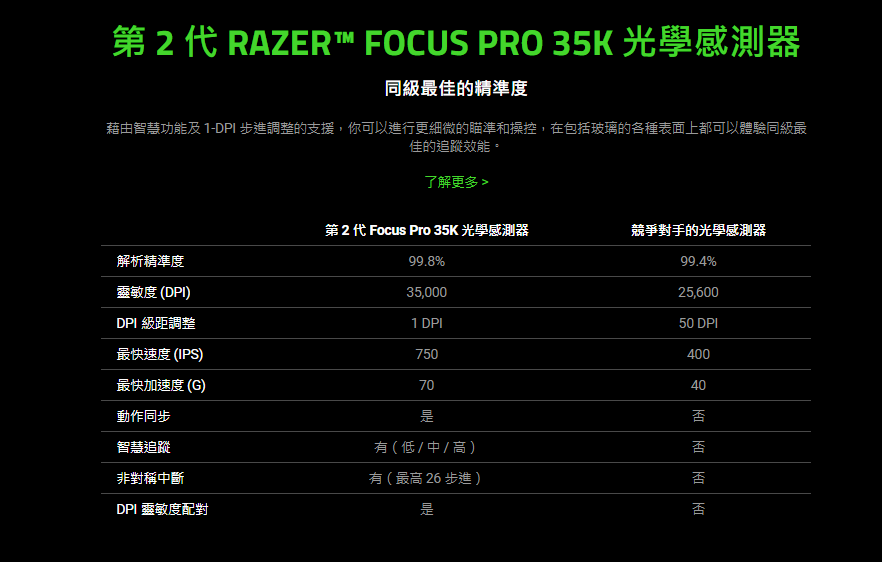 📌✅第 2 代 Razer™ Focus Pro 35K 光學感測器