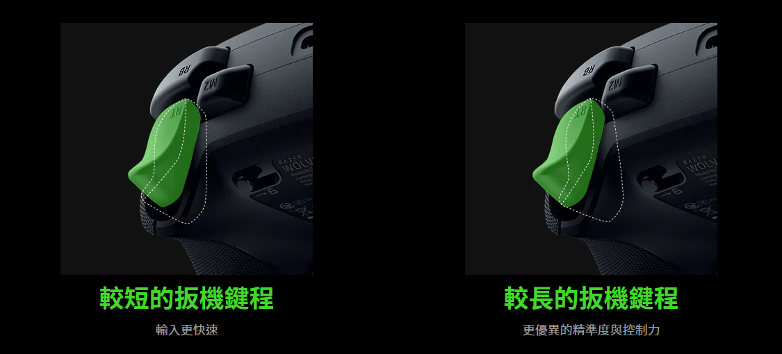 透過控制器底部的兩個便利的滑動鎖,你可以快速將發射鍵設定為零鍵程,以享受即刻觸發的速度,或是改為類比控制,讓你精準控制每個移動。內建觸感震動功能,讓你彷彿親身走入火線,感受按下的每次扳機。