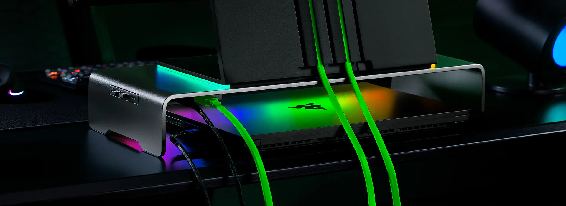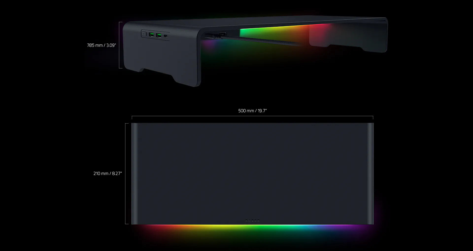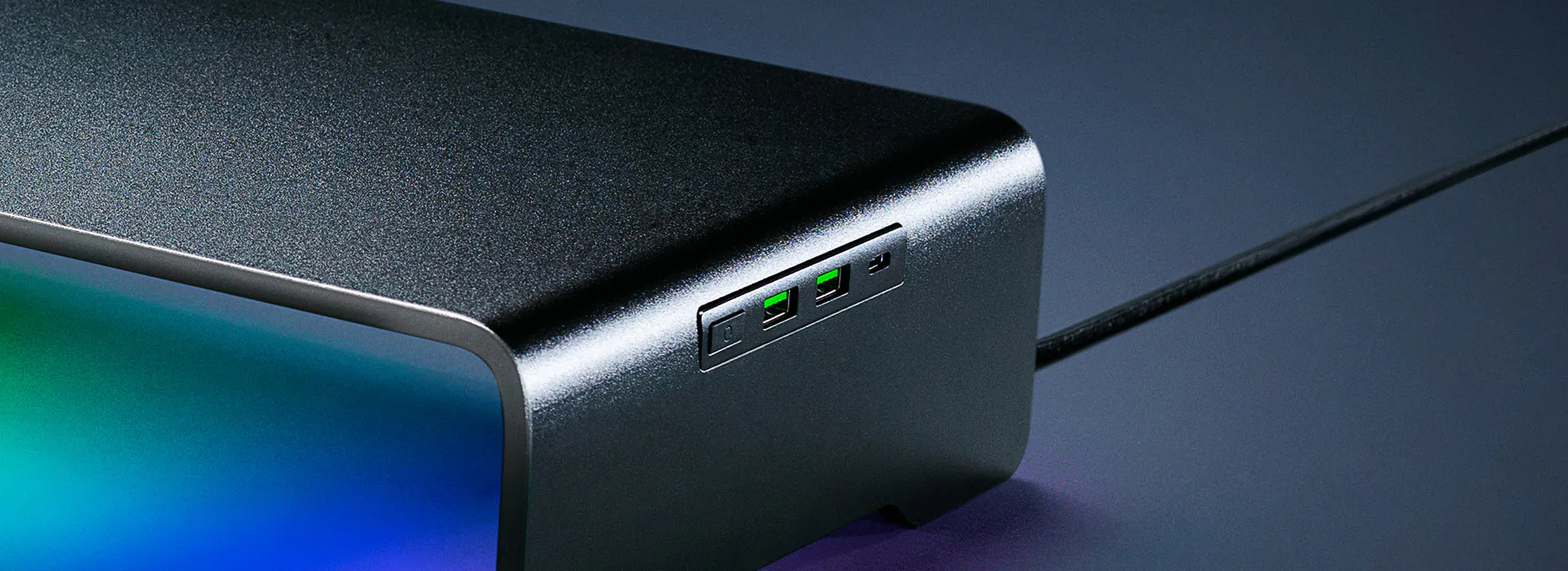 支援 500 公釐長和 210 公釐寬,這個支架能為你將顯示器或其他裝置抬高到完美高度。內建 4 連接埠 USB-C 集線器的便利功能與俐落的插槽,適合你所有設備。用 Razer Chroma 自訂 RGB 燈光,讓你的戰鬥基地提升到全新境界。 將你的工作站或遊戲設備改變為最理想的空間。