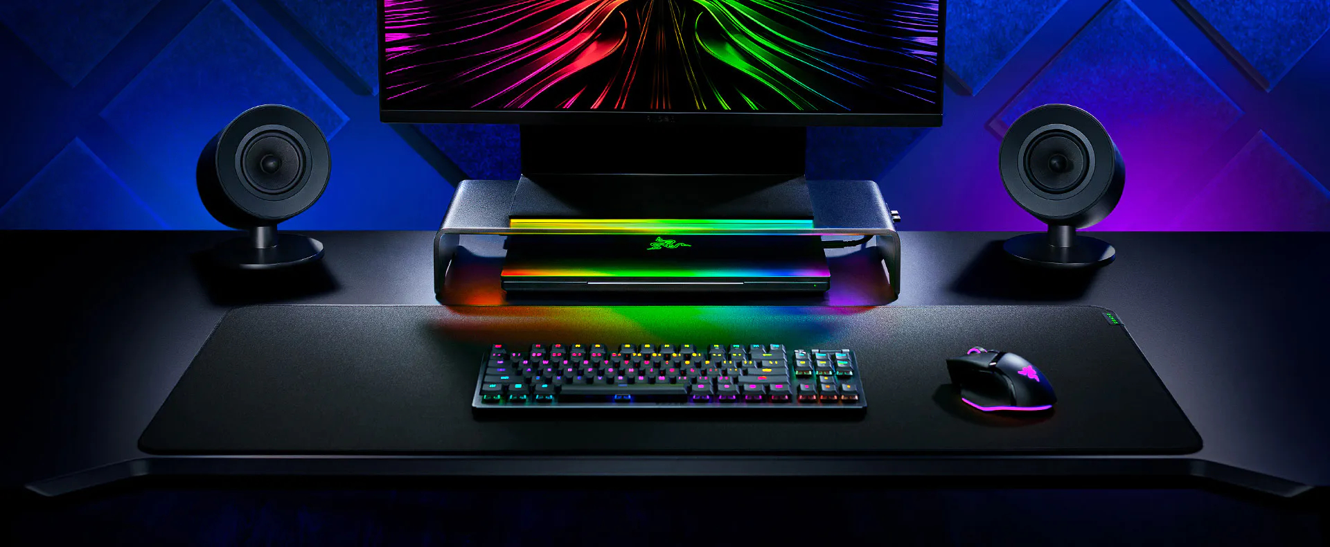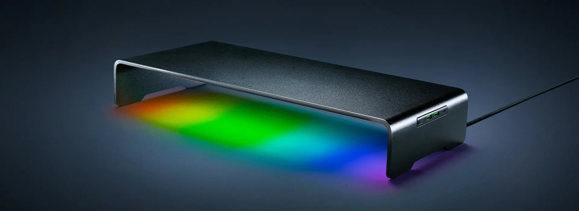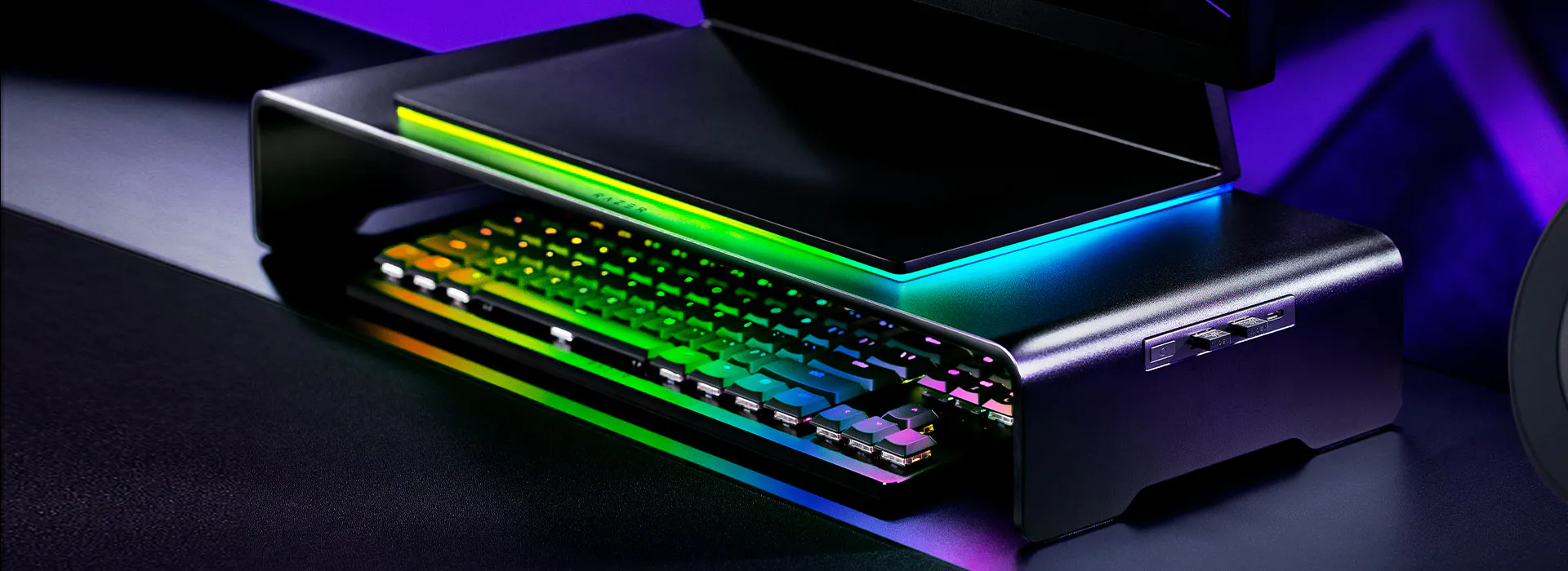 提供 1,680 萬種色彩選項以及一系列亮眼燈光效果,你可以自訂螢幕支架,並與所有 Chroma 裝置同步,擁有無可比擬的工作站美感。