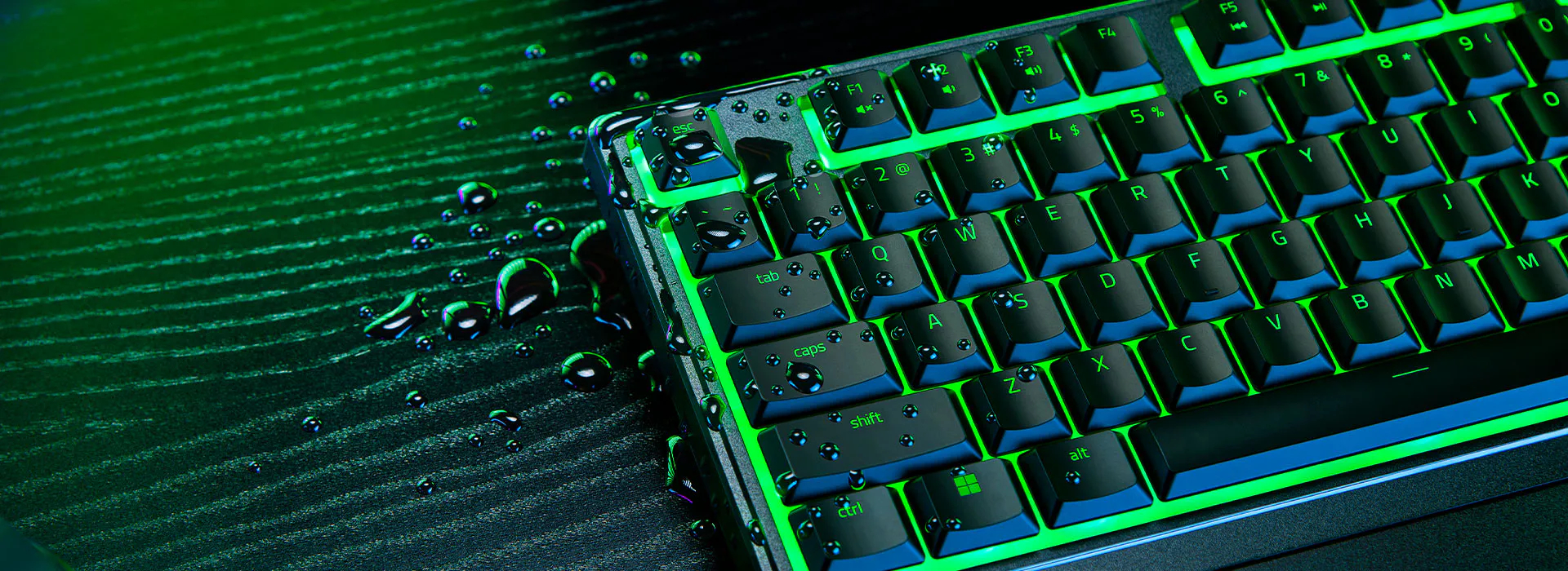 Razer Ornata V3 X 堅固耐用的設計足以應付高強度遊戲使用,且不必擔心少量液體潑濺造成的影響。