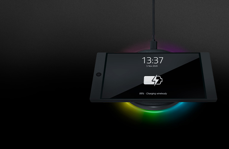 Razer Chroma 無線充電板是整合 Razer Chroma RGB 功能的無線快速充電器,讓你的裝置電力飽滿的同時,還能讓一切看起來更加耀眼。你不但可以自訂充電板的燈光效果,讓它融入你其他 Razer 裝備的風格,充電板本身也針對你所有的充電需求,提供快速順暢的解決方案。