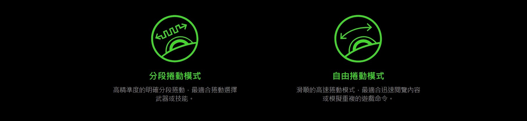 快速執行重複指令,或以自由捲動模式飛快瀏覽內容。啟用分段捲動模式享受強化的精準度與令人滿意的回饋感,特別適合循環切換武器或技能