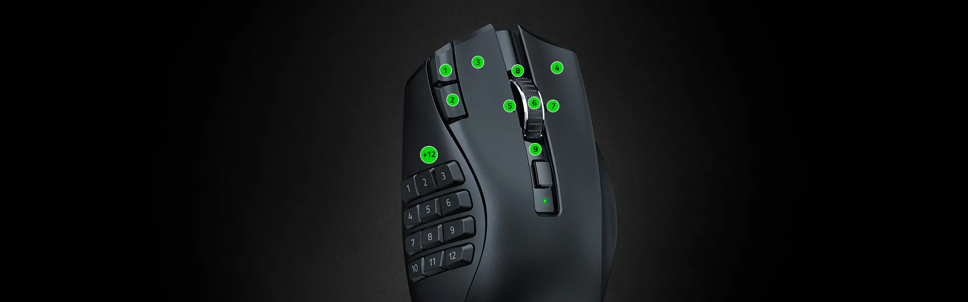 『Razer Naga V2 HyperSpeed 帶你邁向巔峰 - 最為優異的無線人體工學 MMO 遊戲滑鼠。透過 19 顆按鍵和雙模式滾輪,最佳化你的技能循環。HyperSpeed Wireless 模式具備高達 250 個小時的電池續航力,讓你帶著充沛電力展開突襲』