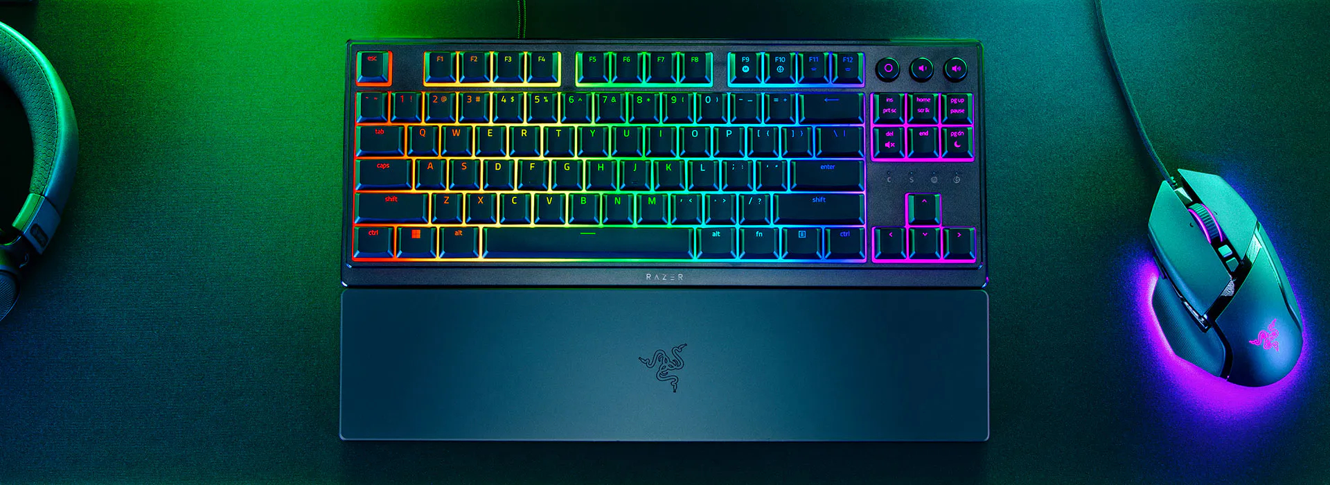 『Razer Ornata V3 TKL 是無數字鍵區矮軸人體工學遊戲鍵盤,搭載 Razer Chroma™ RGB 功能,