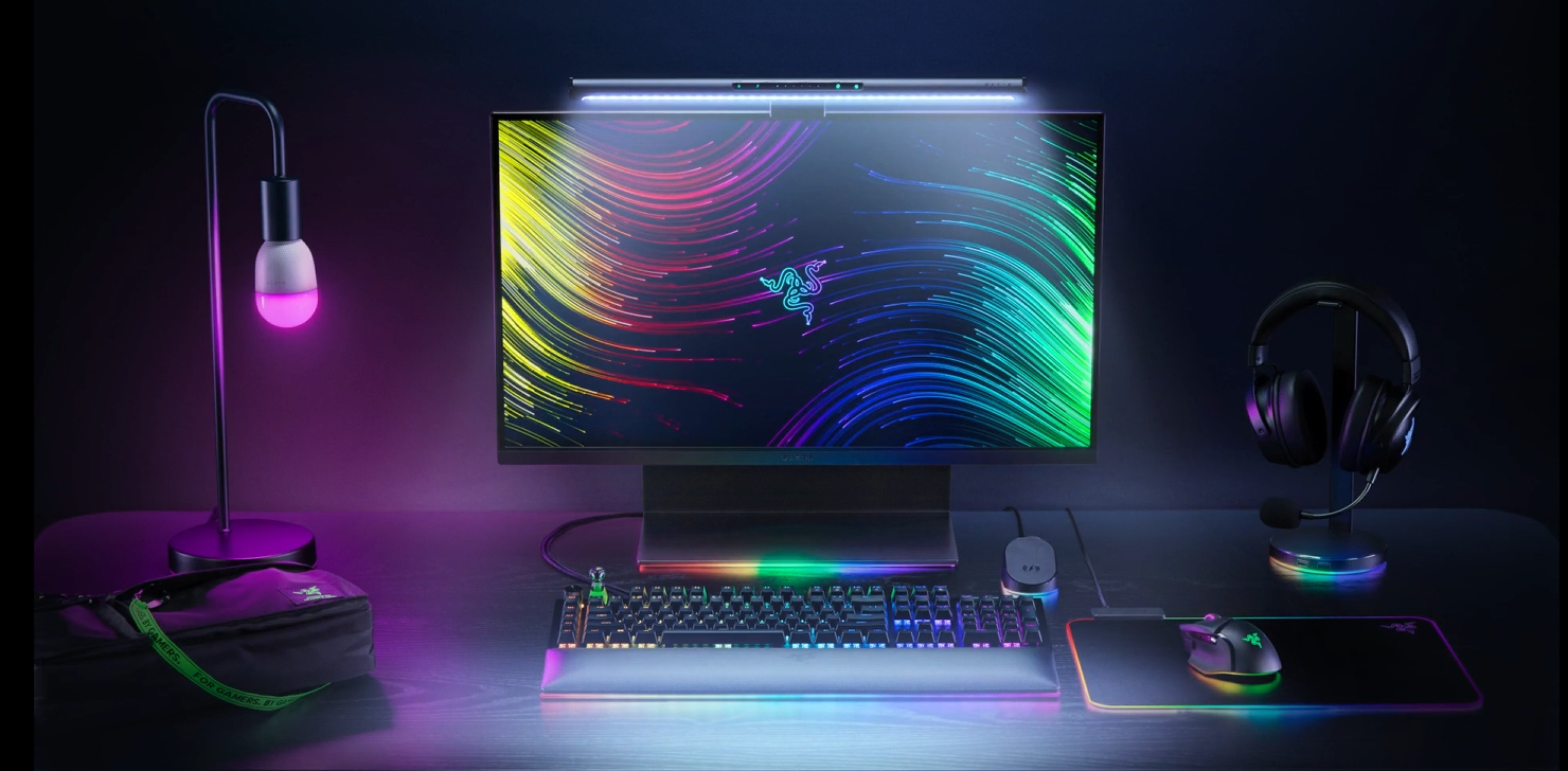 擁有更璀璨的未來。Razer Aether Monitor Light Bar 搭配雙重照明選項,無論遊戲還是工作都是你的絕佳選擇,以能夠調節色溫的白光為你照亮工作室,或是用 Razer Chroma RGB,讓你的電競桌更有氣氛。