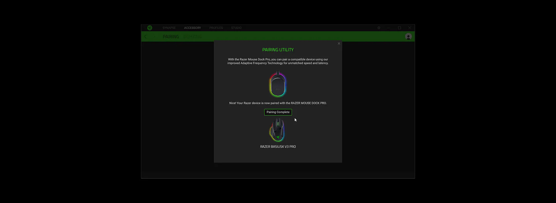 確定已將 Razer 滑鼠底座專業版連接至 USB Type A 連接埠,然後在 Razer Synapse 上選取底座。