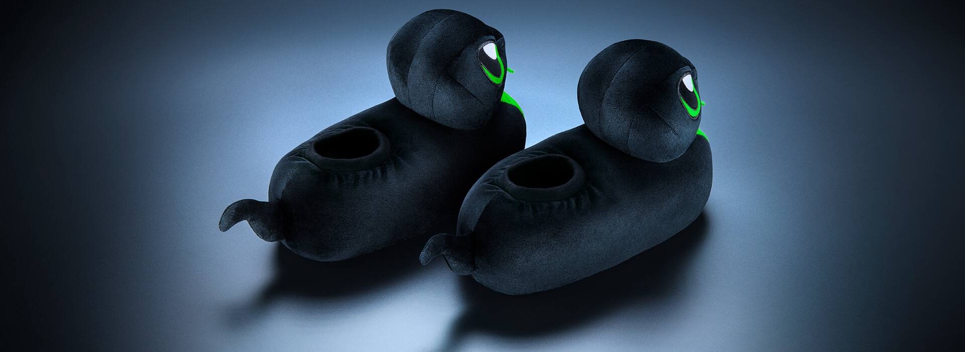 Razer Sneki Snek 拖鞋採用舒適絨布作為內襯,能溫柔包覆你的雙腳,長時間投入遊戲也能保持溫暖舒適。