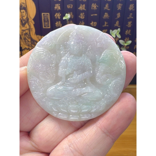 天然翡翠A貨-八大守護神-普賢菩薩鐲心玉牌