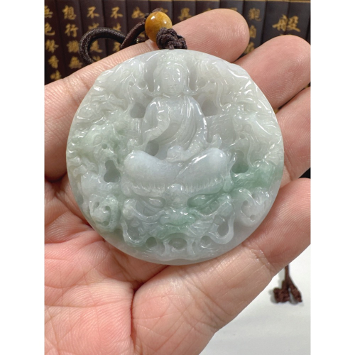 天然翡翠A貨-九龍觀音立體雙面雕鐲心厚庄掛件