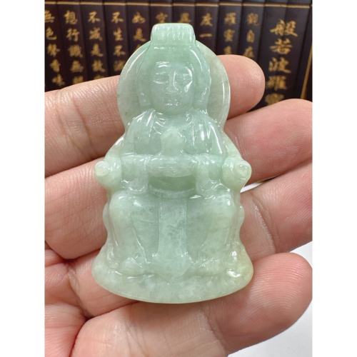 天然翡翠A貨-天生聖母媽祖娘娘立體厚庄掛件