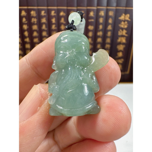 天然翡翠A貨-可愛關聖帝君立體厚庄掛件、小擺件