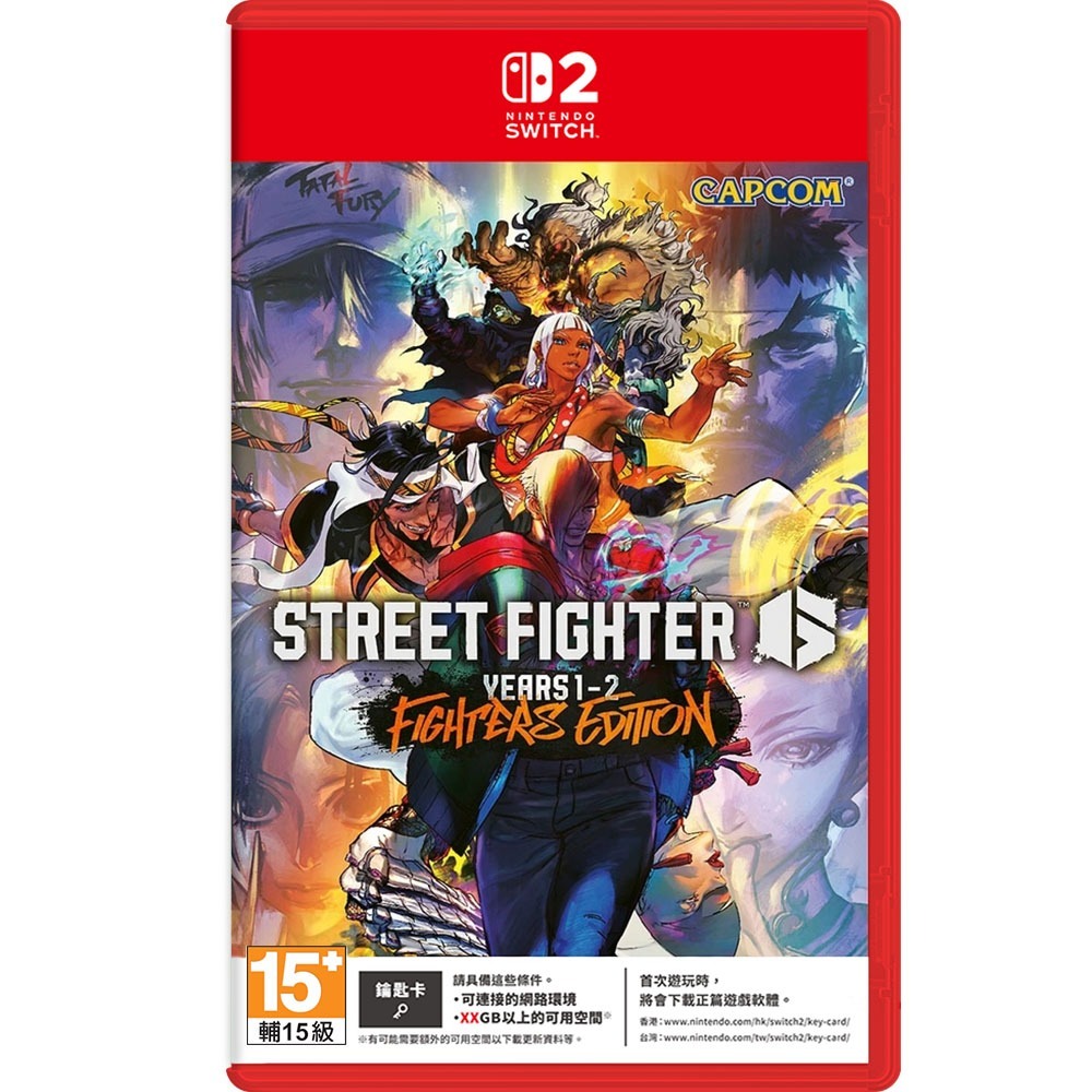 《快打旋風 6 Years 1-2 Fighters Edition》包含遊戲本體,以及以下 DLC 下載序號卡:「Year 1 Character Pass」、「Year 2Character Pass」、至 Year2 為止追加的 4 個擂台和 18 個初始角色的顏色:服裝 1 顏色 3-10,是份量十足的版本。